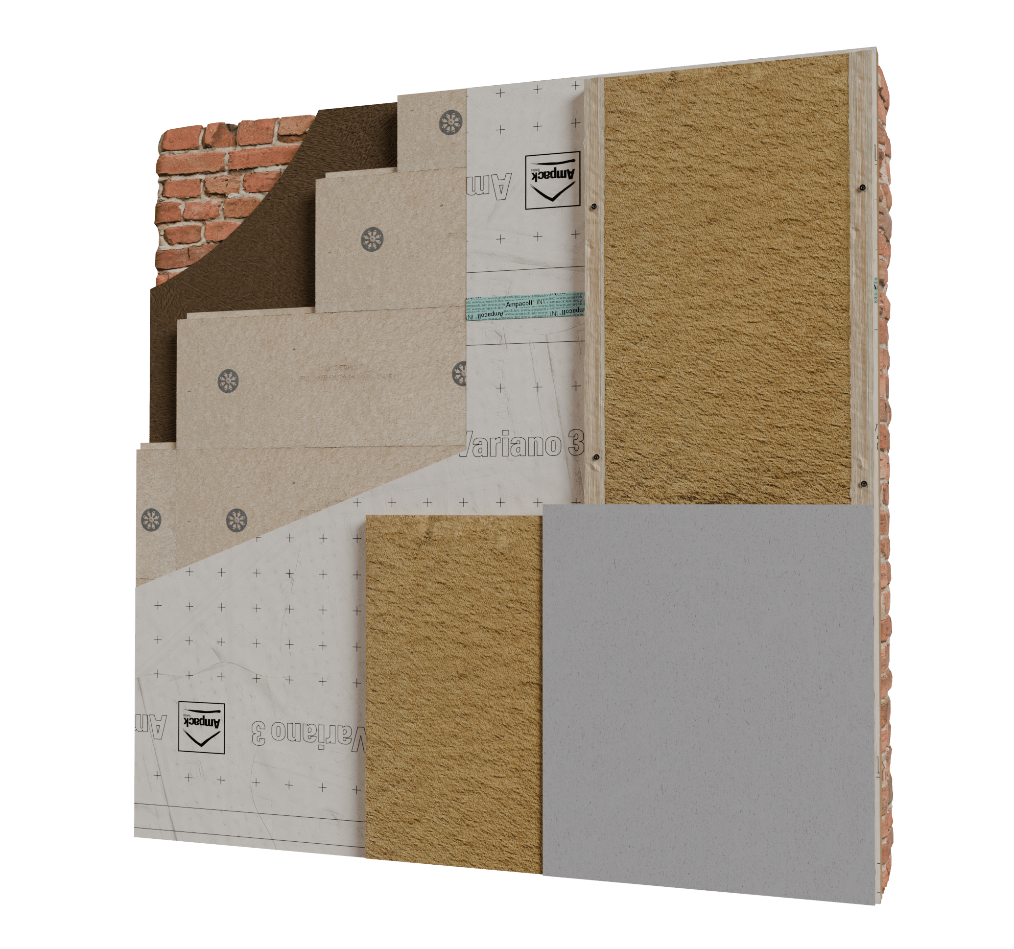 The system comprises of a wood fibre board, mechanically fixed to the wall, followed by an airtightness membrane to minimise air leakage and regulate vapour flow through the wall. Battens are fixed to the surface to create a service zone which avoids destroying the airtightness membrane with service punctures. The rest of the void is filled with flexible wood fibre insulation and is finished with standard plasterboard.