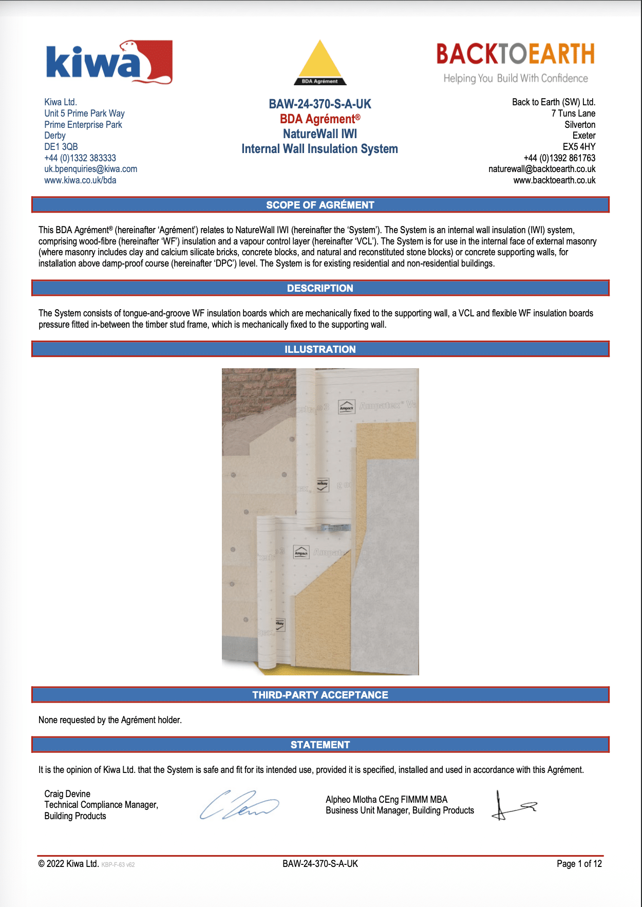 After over 6 years of developing and honing the specification and the components within the NatureWall internal wall insulation system and 18 months of to-and-fro with KIWA, we are really proud to say we have now achieved our first BDA Agrément certificate.