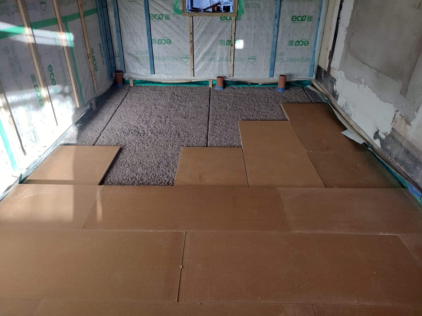 In addition to this we have removed the T&G wood fibre boards initially designed in over the Cemwood, in favour of two layers of 20mm square edged boards. This makes it much easier and quicker to lay the boards and improves the thermal performance of the floor.
